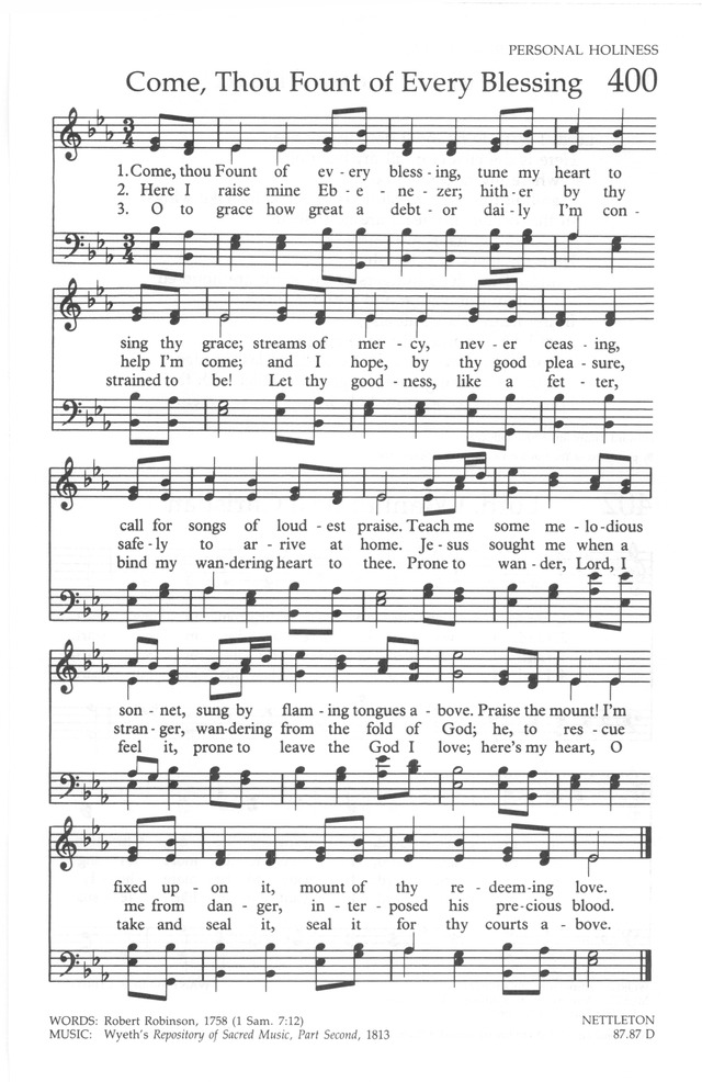 “Come Thou Fount of Every Blessing” UMH #400
