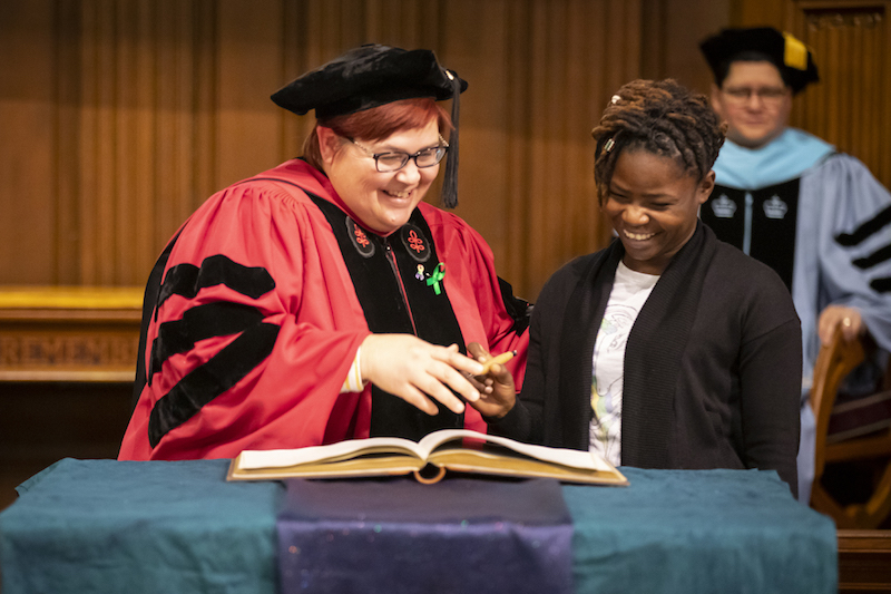 Tonight, if we were able, we would gather in Craig Chapel to participate in one of the most beloved rituals of our community. On a typical matriculation evening, Seminary Hall swells with voices as faculty prepare to process in their academic regalia and students usher friends and family into the chapel. The joy and anticipation are evident. It is an evening to listen, to learn, and to be formally welcomed into the Drew Theo community. For the incoming class of Theo students it is the beginning of an academic adventure, which we recognize with an invitation to sign the matriculation book. Each and every new Theo Student has the opportunity to join their name to a long list of students who walked this journey before them. In so many ways, the book is a witness. It holds space and time at the center of our community reminding us of the generations of colleagues, saints, friends, and mentors that surround our life together in the forest. Though we cannot come together in person to witness the signing of the book by our newest colleagues, we invite you to pause with us and pray for them.